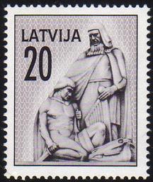| Keywords: 19920229 20sant Latvia Postage Stamp.jpg en Postage stamp issued by Latvia 1992 depicting fragment view of monument in Riga Latvia Scan of postage stamp from own collection Philaweb 2009-11-15 PD-LV-exempt stamps Stamps of Latvia 1992 Riga on stamps War memorials in Latvia on stamps Vaidelotis |