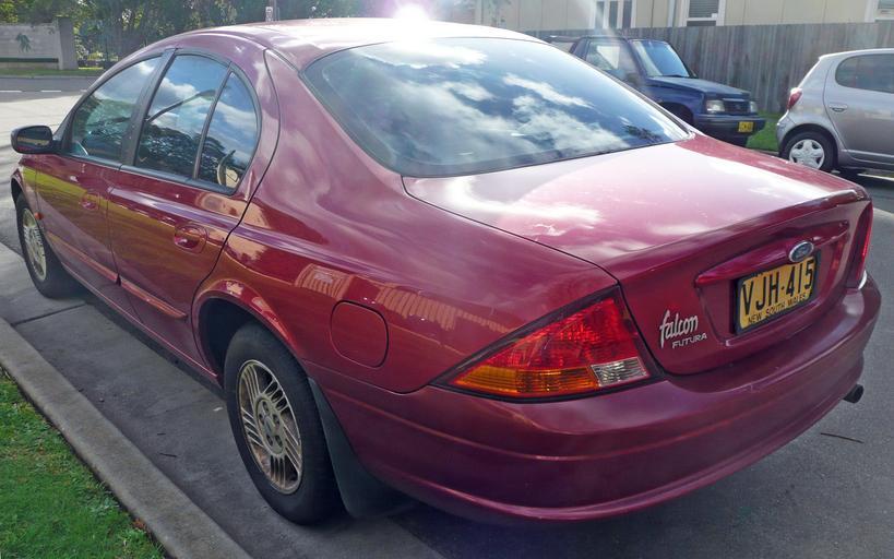 MAKE A MEME View Large Image Ford AU Falcon Futura sedan photographed in Sutherland New South Wales Australia Own 2009-06-19 OSX Released into the public domain OSX Ford Falcon AU Futura Red Ford sedans 1990s red sedans 2000s red sedans Photographs by OSX 1998 Ford ...