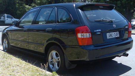 | Keywords: 1999-2000 Mazda 323 (BJ) Shades Astina 5-door hatchback 02.jpg 1999 “2000 Mazda 323 BJ Shades Astina 5-door hatchback photographed in Gymea New South Wales Australia 2008-11-13 Own OSX Released into the public domain OSX Black hatchbacks Mazda 323 BJ Photographs by OSX |