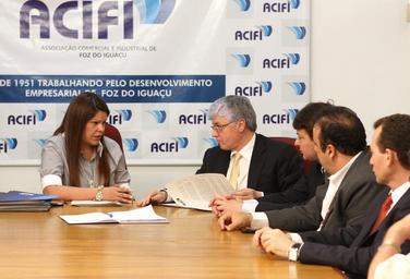 | Keywords: sessão itinerante sessãoitinerante valdir rossoni valdirrossoni plauto miró plautomiró anibelli neto anibellineto ademar traiano ademartraiano reni pereira renipereira indoor Presidente da Associação Comercial e Industrial de Foz do Iguaçu (Acifi), Elizangela de Paula Kuhn, entrega pauta de reivindicações aos deputados durante reunião na tarde dessa quarta-feira (19/10). Basicamente três demandas integram a pauta: construção de três viadutos; duplicação de trecho da BR-277 e ampliação do orçamento para a Secretaria Estadual de Turismo. Participaram do encontro o presidente do Legislativo, Valdir Rossoni, juntamente com o 1º e 2º secretários, deputados Plauto Miró e Reni Pereira, respectivamente, e membros da Comissão de Turismo da Alep. Foto: Nani Gois/Alep (crédito obrigatório) Presidente da Associação Comercial e Industrial de Foz do Iguaçu (Acifi), Elizangela de Paula Kuhn, entrega pauta de reivindicações aos deputados durante reunião na tarde dessa quarta-feira (19/10). Basicamente três demandas integram a pauta: construção de três viadutos; duplicação de trecho da BR-277 e ampliação do orçamento para a Secretaria Estadual de Turismo. Participaram do encontro o presidente do Legislativo, Valdir Rossoni, juntamente com o 1º e 2º secretários, deputados Plauto Miró e Reni Pereira, respectivamente, e membros da Comissão de Turismo da Alep. Foto: Nani Gois/Alep (crédito obrigatório) |