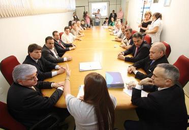 | Keywords: sessão itinerante sessãoitinerante valdir rossoni valdirrossoni plauto miró plautomiró anibelli neto anibellineto ademar traiano ademartraiano reni pereira renipereira indoor Presidente da Associação Comercial e Industrial de Foz do Iguaçu (Acifi), Elizangela de Paula Kuhn, entrega pauta de reivindicações aos deputados durante reunião na tarde dessa quarta-feira (19/10). Basicamente três demandas integram a pauta: construção de três viadutos; duplicação de trecho da BR-277 e ampliação do orçamento para a Secretaria Estadual de Turismo. Participaram do encontro o presidente do Legislativo, Valdir Rossoni, juntamente com o 1º e 2º secretários, deputados Plauto Miró e Reni Pereira, respectivamente, e membros da Comissão de Turismo da Alep. Foto: Nani Gois/Alep (crédito obrigatório) Presidente da Associação Comercial e Industrial de Foz do Iguaçu (Acifi), Elizangela de Paula Kuhn, entrega pauta de reivindicações aos deputados durante reunião na tarde dessa quarta-feira (19/10). Basicamente três demandas integram a pauta: construção de três viadutos; duplicação de trecho da BR-277 e ampliação do orçamento para a Secretaria Estadual de Turismo. Participaram do encontro o presidente do Legislativo, Valdir Rossoni, juntamente com o 1º e 2º secretários, deputados Plauto Miró e Reni Pereira, respectivamente, e membros da Comissão de Turismo da Alep. Foto: Nani Gois/Alep (crédito obrigatório) |