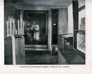| Keywords: 19. Внутренний вид келии преподобного Серафима Саровского, в котором он жил и скончался.jpg ru Внут енний вид келии п еподобного Се афима Са овского в кото ом он жил и скончался 1904 http //andcvet narod ru/arxan/24/sam html не указано other versions Custom license marker 2014 09 24 PD-RusEmpire Uploaded with UploadWizard Album of the Sarov Hermitage views 1904 | ||||