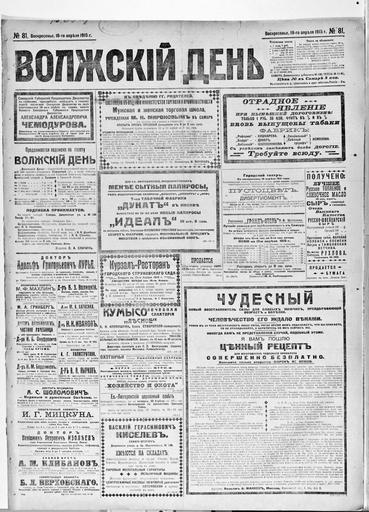 View Original:Волжский день 19 апреля 1915 года страница 1.jpg (2000x2778)