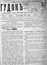 | Keywords: Большевикская газета Гудок №1 (10 декабря 1917 года).jpg en Gudoc - newspaper 10/12/1917 Russia ru Газета Гудок 1 Гудок газета железнодо ожников бывший о ган инисте ства путей сообщения СССР и ЦК п офсоюза абочих ж -д т анспо та http //www gudok ru/files/upload/200704/20070404_7_2 jpg Редакция газеты 1917 PD-Old PD-Art 10 December December 1917 Newspapers of Russia 1917 Newspapers of Russia to be categorised by name | ||||