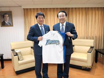 亞協李會長(右)接見日本職棒北海道火腿隊球團代表大社啟二,大社代表致贈我國旅日棒球選手陽岱鋼之1號球衣。.jpg (1024x768)