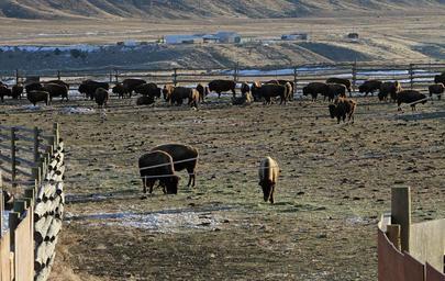 Keywords: outdoor landscape grassland field Bison held in Stephens Creek pens prior to an early morning gather; Jim Peaco; January 2015 Bison held in Stephens Creek pens prior to an early morning gather; Jim Peaco; January 2015