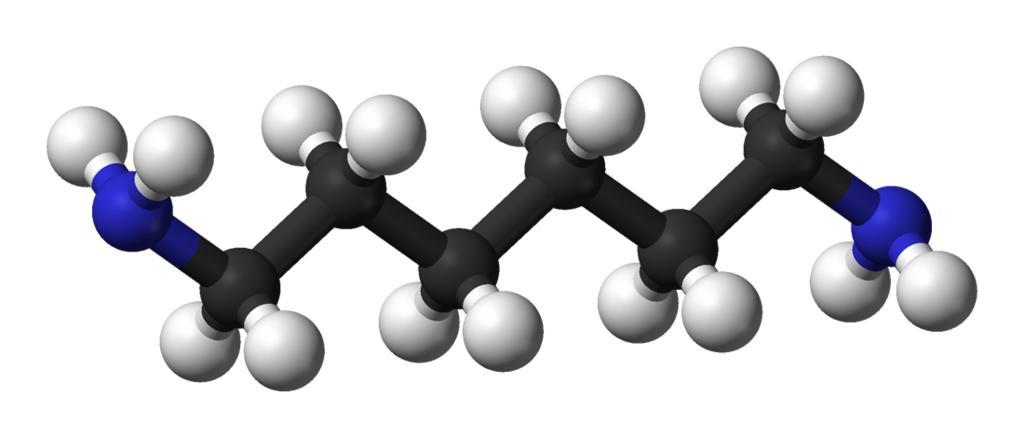| Keywords: 1,6-diaminohexane-3D-balls.png Ball-and-stick model of a molecule of the chemical compound 1 6-Diaminohexane Hexamethylenediamine Kugel-Stab-Modell eines Moleküls der chemischen Verbindung 1 6-Diaminohexan Hexamethylendiamin HMD HMDA Colour legend carbon <span style color 0000cc; >nitrogen</span> <span style color 999999; >hydrogen</span> Own Ben Mills Hexamethylendiamin |