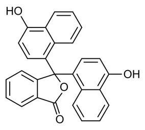 Keywords: 1-Naptholphthalein.svg validSVG chemical structure of 1-Naphtholphthalein made using BKchem Own 2007-01-12 User Bryan Derksen PH indicators 1-naphthols Phthaleins Triarylmethane dyes