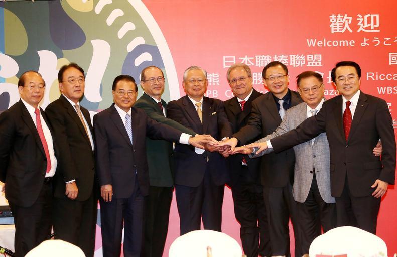亞協李會長(右1)應邀出席「中華職棒WPBL吳會長志揚歡迎日本職棒NPB熊崎勝彥會長」晚宴,會後與亞洲棒總彭誠浩會長(右2)、吳志揚會長(右3)、Fraccari會長(右4)、熊崎勝彥會長(中)、李建榮董事長(左1)、交流協會沼田代表(左2)、中華棒協廖正井理事長(左3)及體育署何卓飛署長(左4)合影.jpg (4992x3232)