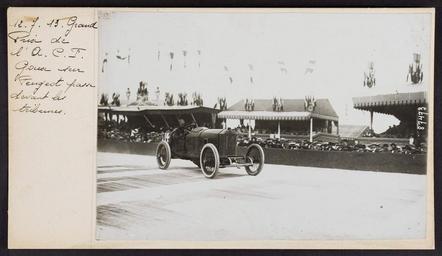Keywords: photo border 12 juillet 1913. Grand prix de l'A.C.F. Goux sur Peugeot passe devant les tribunes. 12 juillet 1913. Grand prix de l'A.C.F. Goux sur Peugeot passe devant les tribunes.