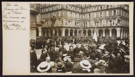 Keywords: photo border Fête de Jeanne d'Arc à Paris. La remise des couronnes à la statue place Rivoli. Fête de Jeanne d'Arc à Paris. La remise des couronnes à la statue place Rivoli.