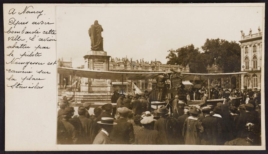 Keywords: photo border Nancy. L'avion abattu par le pilote Nungesser est ramené sur la place Stanislas. Nancy. L'avion abattu par le pilote Nungesser est ramené sur la place Stanislas.