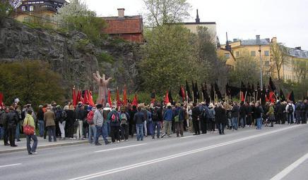 | Keywords: 1maj2007-LaMano.jpg Anarchist demo in front of La Mano in Stockholm Sweden on May 1 2007 Own 2007-05-01 Liftarn 2007 in Södermalm May 2007 in Sweden 1st of May in Stockholm Anarchism in Sweden La mano sculpture Files by Liftarn Katarinavägen Monuments and memorials in Stockholm La Mano Photographs of anarchist flags |