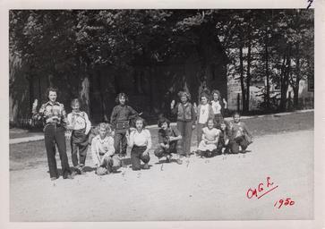 | Keywords: girl guides girlguides hiking 1950 north addington northaddington mary lloyd marylloyd phyllis creighton phylliscreighton marilyn dicks marilyndicks barbara nicholson barbaranicholson marlene jerome marlenejerome nadine yearwood nadineyearwood laura wood laurawood verna rosenplot vernarosenplot dora shier dorashier hilda woodman hildawoodman audrey freeburn audreyfreeburn teresa jerome teresajerome photo border The Girl Guides are about to go hiking down the Skootamatta River . Photo taken in front of St. Paul's Anglican Church in Flinton near Freeburn's Store circa- 1950. Left-Right: 1. Mary Lloyd- Captain 2. Phyllis Creighton- standing 3. Marilyn Dicks - kneeling 4. Barbara Nicholson- standing 5. Marlene Jerome - kneeling 6. Nadine Yearwood - kneeling 7. Laura Wood - standing 8. Verna Rosenplot - standing 9. Dora Shier? standing 10. Hilda Woodman - kneeling 11. Audrey Freeburn - kneeling 12. Teresa Jerome - kneeling The Guides are making the 3 finger Girl Guide sign. The Girl Guides are about to go hiking down the Skootamatta River . Photo taken in front of St. Paul's Anglican Church in Flinton near Freeburn's Store circa- 1950. Left-Right: 1. Mary Lloyd- Captain 2. Phyllis Creighton- standing 3. Marilyn Dicks - kneeling 4. Barbara Nicholson- standing 5. Marlene Jerome - kneeling 6. Nadine Yearwood - kneeling 7. Laura Wood - standing 8. Verna Rosenplot - standing 9. Dora Shier? standing 10. Hilda Woodman - kneeling 11. Audrey Freeburn - kneeling 12. Teresa Jerome - kneeling The Guides are making the 3 finger Girl Guide sign. |