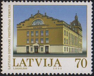 | Keywords: 20030606 70sant Latvia Postage Stamp.jpg en Latvian postage stamp depicting the baptist temple in Riga Latvia Scan of postage stamp from own collection Philaweb 2010-04-25 PD-LV-exempt stamps Stamps of Latvia 2003 Houses of prayer on stamps Riga on stamps |