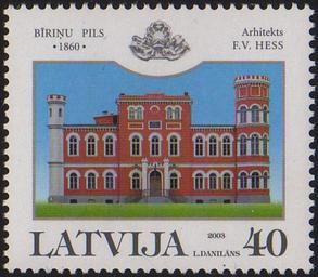| Keywords: 20030927 40sant Latvia Postage Stamp.jpg en Latvian postage stamp depicting the Bīriņi Castle noting the name of architect of reconstructions Friedrich Wilhelm Hess Scan of postage stamp from own collection Philaweb 2010-04-25 PD-LV-exempt stamps Stamps of Latvia 2003 Castles in Latvia on stamps Birini Bīriņi Palace |