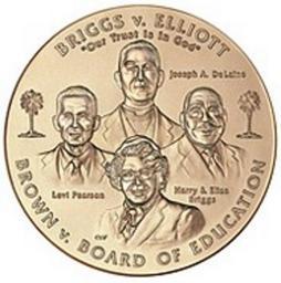 | Keywords: 2003 Brown et al. v. the Board of Education of Topeka et al. Congressional Gold Medal front.jpg Text info from http //catalog usmint gov/webapp/wcs/stores/servlet/ProductDisplay catalogId 10001 storeId 10001 productId 11002 langId -1 U S Mint Authorized by Public Law 108-180 this medal commemorates Reverend Joseph A DeLaine Harry and Eliza Briggs and Levi Pearson for their contributions to the Nation as pioneers in the effort to desegregate public schools that led directly to the landmark desegregation case of Brown et al v the Board of Education of Topeka et al The medal is a bronze replica of the Congressional Gold Medals awarded posthumously to Reverend Joseph A DeLaine Harry and Eliza Briggs and Levi Pearson and presented to personal representatives of each at a ceremony at the United States Capitol building on September 9 2004 The obverse design features a portrait of Reverend Joseph A DeLaine at the top center of the design Harry Briggs in the right center Eliza Briggs at the lower center and Levi Pearson in the left center of the design Each name is inscribed next to the corresponding image Centered along the top field are the inscriptions BRIGGS v ELLIOTT and Our Trust Is In God Inscribed along the bottom are the words BROWN v BOARD OF EDUCATION Two palm trees flank the images one on the left and one on the right The reverse design features four inscriptions that run from top to bottom Honoring the Pioneers and Petitioners from Clarendon County South Carolina They proved that segregation in education can never produce equality and that it is an evil that must be eradicated Judge J Waties Waring Dissenting Opinion ACT OF CONGRESS 2003 To the left of the inscriptions is a statue of Justitia the Roman goddess of justice portrayed with a pair of balanced scales raised in her left hand and a sword at her side in her right hand In the forefront four books are to be seen http //catalog usmint gov 2003 United States Mint Design Obverse - Charles L Vickers Reverse - Donna Weaver PD Image 2003 Brown et al v the Board of Education of Topeka et al Congressional Gold Medal jpg PD-USGov Congressional Gold Medals Brown v Board of Education 2003 medals Medals showing four people |
