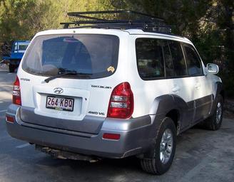 Keywords: 2005 Hyundai Terracan (HP) wagon (2007-09-28) 03.jpg 2005 Hyundai Terracan HP wagon photographed on Fraser Island Queensland Australia 2007-09-28 Own OSX OSX Hyundai Terracan Photographs by OSX Silver and white vehicles