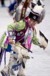 | Keywords: smithsonian institution smithsonianinstitution native american nativeamerican ceremony traditional ritual native american dancer nativeamericandancer native american costume nativeamericancostume powwow american indian americanindian headdress katherine fogden katherinefogden national powwow nationalpowwow digital photo digitalphoto vibrant costume of lime green and purple colors vibrantcostumeoflimegreenandpurplecolors colorful costume male unique indian hat color stick feather indian ceremony indianceremony national museum of the american indian nationalmuseumoftheamericanindian Description: Powwows are large social gatherings of Native Americans who follow traditional dances started centuries ago by their ancestors, and which continually evolve to include contemporary aspects. These events of drum music, dancing, singing, artistry and food, are attended by Natives and non-Natives, all of whom join in the dancing and take advantage of the opportunity to see old friends and teach the traditional ways to a younger generation. During the National Powwow, the audience see dancers in full regalia compete in several dance categories, including Men and Women's Golden Age (ages 50 and older); Men's Fancy Dance, Grass and Traditional (Northern and Southern); Women's Jingle Dress, Fancy Shawl, and Traditional (Northern and Southern); Teens (13-17); Juniors (6-12) and Tiny Tots (ages 5 and younger). The drum groups are the heart of all powwows and provide the pulsating and thunderous beats that accompany a dancer's every movement. The powwow is led by three "host drums" that showcase three distinct styles of singing (Northern, Southern and contemporary) and represent the best examples of each style. The drum contest highlights groups of 10 to 12 members each, and they sing traditional family songs that are passed down orally from one generation to the next. The National Museum of the American Indian sponsored the National Powwow in 2002, 2005, and 2007 as a way of presenting to the public the diversity and social traditions of contemporary Native cultures. Creator/Photographer: Katherine Fogden Medium: Digital photograph Culture: American Indian Geography: USA Date: 2005 Repository: National Museum of the American Indian Accession number: 081305KFPWd255 Description: Powwows are large social gatherings of Native Americans who follow traditional dances started centuries ago by their ancestors, and which continually evolve to include contemporary aspects. These events of drum music, dancing, singing, artistry and food, are attended by Natives and non-Natives, all of whom join in the dancing and take advantage of the opportunity to see old friends and teach the traditional ways to a younger generation. During the National Powwow, the audience see dancers in full regalia compete in several dance categories, including Men and Women's Golden Age (ages 50 and older); Men's Fancy Dance, Grass and Traditional (Northern and Southern); Women's Jingle Dress, Fancy Shawl, and Traditional (Northern and Southern); Teens (13-17); Juniors (6-12) and Tiny Tots (ages 5 and younger). The drum groups are the heart of all powwows and provide the pulsating and thunderous beats that accompany a dancer's every movement. The powwow is led by three "host drums" that showcase three distinct styles of singing (Northern, Southern and contemporary) and represent the best examples of each style. The drum contest highlights groups of 10 to 12 members each, and they sing traditional family songs that are passed down orally from one generation to the next. The National Museum of the American Indian sponsored the National Powwow in 2002, 2005, and 2007 as a way of presenting to the public the diversity and social traditions of contemporary Native cultures. Creator/Photographer: Katherine Fogden Medium: Digital photograph Culture: American Indian Geography: USA Date: 2005 Repository: National Museum of the American Indian Accession number: 081305KFPWd255 |