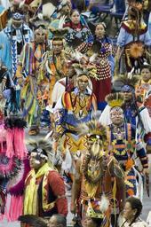 | Keywords: smithsonian institution smithsonianinstitution powwow native americans nativeamericans regalia tradition traditional costumes traditionalcostumes cultural dances culturaldances composite picture compositepicture indian women indianwomen indian men indianmen indian photo costume dance group colorful head dress headdress men national museum of the american indian nationalmuseumoftheamericanindian sport Description: Powwows are large social gatherings of Native Americans who follow traditional dances started centuries ago by their ancestors, and which continually evolve to include contemporary aspects. These events of drum music, dancing, singing, artistry and food, are attended by Natives and non-Natives, all of whom join in the dancing and take advantage of the opportunity to see old friends and teach the traditional ways to a younger generation. During the National Powwow, the audience see dancers in full regalia compete in several dance categories, including Men and Women's Golden Age (ages 50 and older); Men's Fancy Dance, Grass and Traditional (Northern and Southern); Women's Jingle Dress, Fancy Shawl, and Traditional (Northern and Southern); Teens (13-17); Juniors (6-12) and Tiny Tots (ages 5 and younger). The drum groups are the heart of all powwows and provide the pulsating and thunderous beats that accompany a dancer's every movement. The powwow is led by three "host drums" that showcase three distinct styles of singing (Northern, Southern and contemporary) and represent the best examples of each style. The drum contest highlights groups of 10 to 12 members each, and they sing traditional family songs that are passed down orally from one generation to the next. The National Museum of the American Indian sponsored the National Powwow in 2002, 2005, and 2007 as a way of presenting to the public the diversity and social traditions of contemporary Native cultures. Creator/Photographer: R.A. Whiteside Medium: Digital photograph Culture: American Indian Geography: USA Date: 2005 Repository: National Museum of the American Indian Accession number: 081405RWPWNMAIc 026 Description: Powwows are large social gatherings of Native Americans who follow traditional dances started centuries ago by their ancestors, and which continually evolve to include contemporary aspects. These events of drum music, dancing, singing, artistry and food, are attended by Natives and non-Natives, all of whom join in the dancing and take advantage of the opportunity to see old friends and teach the traditional ways to a younger generation. During the National Powwow, the audience see dancers in full regalia compete in several dance categories, including Men and Women's Golden Age (ages 50 and older); Men's Fancy Dance, Grass and Traditional (Northern and Southern); Women's Jingle Dress, Fancy Shawl, and Traditional (Northern and Southern); Teens (13-17); Juniors (6-12) and Tiny Tots (ages 5 and younger). The drum groups are the heart of all powwows and provide the pulsating and thunderous beats that accompany a dancer's every movement. The powwow is led by three "host drums" that showcase three distinct styles of singing (Northern, Southern and contemporary) and represent the best examples of each style. The drum contest highlights groups of 10 to 12 members each, and they sing traditional family songs that are passed down orally from one generation to the next. The National Museum of the American Indian sponsored the National Powwow in 2002, 2005, and 2007 as a way of presenting to the public the diversity and social traditions of contemporary Native cultures. Creator/Photographer: R.A. Whiteside Medium: Digital photograph Culture: American Indian Geography: USA Date: 2005 Repository: National Museum of the American Indian Accession number: 081405RWPWNMAIc 026 |