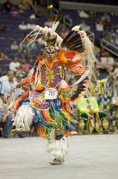 | Keywords: smithsonian institution smithsonianinstitution costume man native american nativeamerican dance tribal native american traditional nativeamericantraditional ornamental dress ornamentaldress native american dance competition nativeamericandancecompetition american indian americanindian competition dance competitiondance performance native american dance nativeamericandance feathers multicolor head dress headdress fringe bright colors brightcolors contest stadium national museum of the american indian nationalmuseumoftheamericanindian outdoor Description: Powwows are large social gatherings of Native Americans who follow traditional dances started centuries ago by their ancestors, and which continually evolve to include contemporary aspects. These events of drum music, dancing, singing, artistry and food, are attended by Natives and non-Natives, all of whom join in the dancing and take advantage of the opportunity to see old friends and teach the traditional ways to a younger generation. During the National Powwow, the audience see dancers in full regalia compete in several dance categories, including Men and Women's Golden Age (ages 50 and older); Men's Fancy Dance, Grass and Traditional (Northern and Southern); Women's Jingle Dress, Fancy Shawl, and Traditional (Northern and Southern); Teens (13-17); Juniors (6-12) and Tiny Tots (ages 5 and younger). The drum groups are the heart of all powwows and provide the pulsating and thunderous beats that accompany a dancer's every movement. The powwow is led by three "host drums" that showcase three distinct styles of singing (Northern, Southern and contemporary) and represent the best examples of each style. The drum contest highlights groups of 10 to 12 members each, and they sing traditional family songs that are passed down orally from one generation to the next. The National Museum of the American Indian sponsored the National Powwow in 2002, 2005, and 2007 as a way of presenting to the public the diversity and social traditions of contemporary Native cultures. Creator/Photographer: Walter Larrimore Medium: Digital photograph Culture: American Indian Geography: USA Date: 2005 Repository: National Museum of the American Indian Accession number: 081405WLPOWWOW339 Description: Powwows are large social gatherings of Native Americans who follow traditional dances started centuries ago by their ancestors, and which continually evolve to include contemporary aspects. These events of drum music, dancing, singing, artistry and food, are attended by Natives and non-Natives, all of whom join in the dancing and take advantage of the opportunity to see old friends and teach the traditional ways to a younger generation. During the National Powwow, the audience see dancers in full regalia compete in several dance categories, including Men and Women's Golden Age (ages 50 and older); Men's Fancy Dance, Grass and Traditional (Northern and Southern); Women's Jingle Dress, Fancy Shawl, and Traditional (Northern and Southern); Teens (13-17); Juniors (6-12) and Tiny Tots (ages 5 and younger). The drum groups are the heart of all powwows and provide the pulsating and thunderous beats that accompany a dancer's every movement. The powwow is led by three "host drums" that showcase three distinct styles of singing (Northern, Southern and contemporary) and represent the best examples of each style. The drum contest highlights groups of 10 to 12 members each, and they sing traditional family songs that are passed down orally from one generation to the next. The National Museum of the American Indian sponsored the National Powwow in 2002, 2005, and 2007 as a way of presenting to the public the diversity and social traditions of contemporary Native cultures. Creator/Photographer: Walter Larrimore Medium: Digital photograph Culture: American Indian Geography: USA Date: 2005 Repository: National Museum of the American Indian Accession number: 081405WLPOWWOW339 |