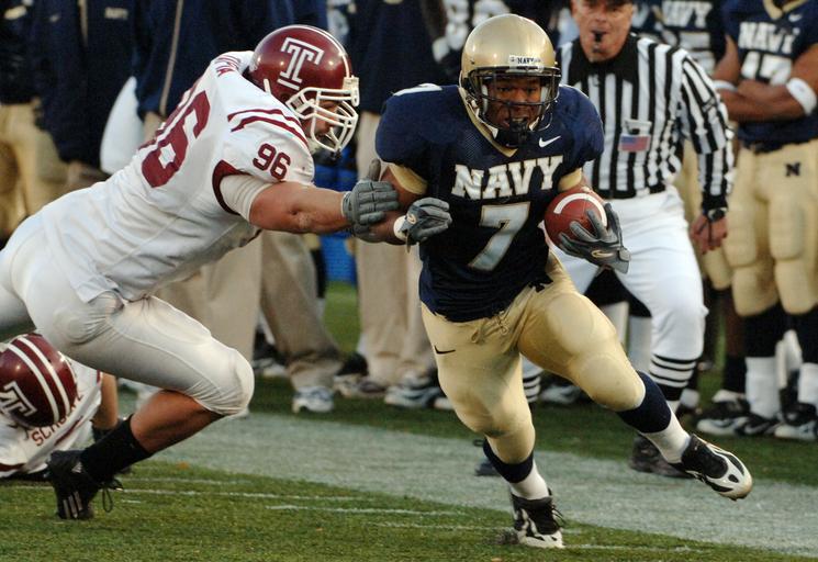 | Keywords: 2005 Temple-Navy Game 01.jpg U S Naval Academy Midshipman slot back Reggie Campbell 7 out paces Temple Owls linebacker Manuel Tapia 96 during the 4th quarter of play at Navy-Marine Corps Memorial Stadium http //www navy mil/view_image asp id 30061 2005-11-19 Damon J Moritz PD-USGov-Military-Navy College American football in-game action Navy Midshipmen football Temple Owls football U S Naval Academy Midshipmen vs Temple University Owls Nov 19 2005 | ||||