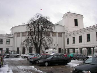 Keywords: 20070131 sejm od tylu 3 bezlistne drzewo 2.jpg Sejm RP<br>budynek główny oraz parking na dachu budynku Ł widziane od strony budynku B Own 2006-01 Piotr VaGla Waglowski http //www vagla pl Sejm building complex