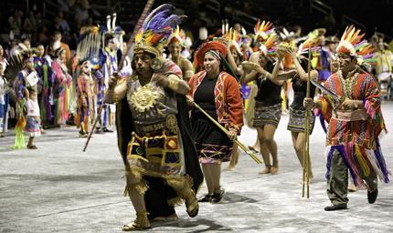 | Keywords: smithsonian institution smithsonianinstitution native american nativeamerican man woman costume dance powwow gathering indians dancing ceremonial ritual crowd face painting facepainting feathers headdress headgear colorful beaded skirts barefoot bare feet barefeet audience national museum of the american indian nationalmuseumoftheamericanindian outdoor Description: Powwows are large social gatherings of Native Americans who follow traditional dances started centuries ago by their ancestors, and which continually evolve to include contemporary aspects. These events of drum music, dancing, singing, artistry and food, are attended by Natives and non-Natives, all of whom join in the dancing and take advantage of the opportunity to see old friends and teach the traditional ways to a younger generation. During the National Powwow, the audience see dancers in full regalia compete in several dance categories, including Men and Women's Golden Age (ages 50 and older); Men's Fancy Dance, Grass and Traditional (Northern and Southern); Women's Jingle Dress, Fancy Shawl, and Traditional (Northern and Southern); Teens (13-17); Juniors (6-12) and Tiny Tots (ages 5 and younger). The drum groups are the heart of all powwows and provide the pulsating and thunderous beats that accompany a dancer's every movement. The powwow is led by three "host drums" that showcase three distinct styles of singing (Northern, Southern and contemporary) and represent the best examples of each style. The drum contest highlights groups of 10 to 12 members each, and they sing traditional family songs that are passed down orally from one generation to the next. The National Museum of the American Indian sponsored the National Powwow in 2002, 2005, and 2007 as a way of presenting to the public the diversity and social traditions of contemporary Native cultures. Creator/Photographer: Ken Rahaim Medium: Digital photograph Culture: American Indian Geography: USA Date: 2007 Repository: National Museum of the American Indian Accession number: 07natl-powwow_0158 Description: Powwows are large social gatherings of Native Americans who follow traditional dances started centuries ago by their ancestors, and which continually evolve to include contemporary aspects. These events of drum music, dancing, singing, artistry and food, are attended by Natives and non-Natives, all of whom join in the dancing and take advantage of the opportunity to see old friends and teach the traditional ways to a younger generation. During the National Powwow, the audience see dancers in full regalia compete in several dance categories, including Men and Women's Golden Age (ages 50 and older); Men's Fancy Dance, Grass and Traditional (Northern and Southern); Women's Jingle Dress, Fancy Shawl, and Traditional (Northern and Southern); Teens (13-17); Juniors (6-12) and Tiny Tots (ages 5 and younger). The drum groups are the heart of all powwows and provide the pulsating and thunderous beats that accompany a dancer's every movement. The powwow is led by three "host drums" that showcase three distinct styles of singing (Northern, Southern and contemporary) and represent the best examples of each style. The drum contest highlights groups of 10 to 12 members each, and they sing traditional family songs that are passed down orally from one generation to the next. The National Museum of the American Indian sponsored the National Powwow in 2002, 2005, and 2007 as a way of presenting to the public the diversity and social traditions of contemporary Native cultures. Creator/Photographer: Ken Rahaim Medium: Digital photograph Culture: American Indian Geography: USA Date: 2007 Repository: National Museum of the American Indian Accession number: 07natl-powwow_0158 |