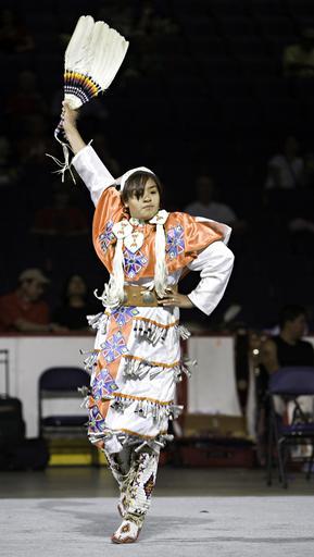 | Keywords: smithsonian institution smithsonianinstitution native american nativeamerican girl costume dance powwow gathering jingle dress jingledress indian national museum of the american indian nationalmuseumoftheamericanindian not a costume notacostume Description: Powwows are large social gatherings of Native Americans who follow traditional dances started centuries ago by their ancestors, and which continually evolve to include contemporary aspects. These events of drum music, dancing, singing, artistry and food, are attended by Natives and non-Natives, all of whom join in the dancing and take advantage of the opportunity to see old friends and teach the traditional ways to a younger generation. During the National Powwow, the audience see dancers in full regalia compete in several dance categories, including Men and Women's Golden Age (ages 50 and older); Men's Fancy Dance, Grass and Traditional (Northern and Southern); Women's Jingle Dress, Fancy Shawl, and Traditional (Northern and Southern); Teens (13-17); Juniors (6-12) and Tiny Tots (ages 5 and younger). The drum groups are the heart of all powwows and provide the pulsating and thunderous beats that accompany a dancer's every movement. The powwow is led by three "host drums" that showcase three distinct styles of singing (Northern, Southern and contemporary) and represent the best examples of each style. The drum contest highlights groups of 10 to 12 members each, and they sing traditional family songs that are passed down orally from one generation to the next. The National Museum of the American Indian sponsored the National Powwow in 2002, 2005, and 2007 as a way of presenting to the public the diversity and social traditions of contemporary Native cultures. Creator/Photographer: Ken Rahaim Medium: Digital photograph Culture: American Indian Geography: USA Date: 2007 Repository: National Museum of the American Indian Accession number: 07natl-powwow_0376 Description: Powwows are large social gatherings of Native Americans who follow traditional dances started centuries ago by their ancestors, and which continually evolve to include contemporary aspects. These events of drum music, dancing, singing, artistry and food, are attended by Natives and non-Natives, all of whom join in the dancing and take advantage of the opportunity to see old friends and teach the traditional ways to a younger generation. During the National Powwow, the audience see dancers in full regalia compete in several dance categories, including Men and Women's Golden Age (ages 50 and older); Men's Fancy Dance, Grass and Traditional (Northern and Southern); Women's Jingle Dress, Fancy Shawl, and Traditional (Northern and Southern); Teens (13-17); Juniors (6-12) and Tiny Tots (ages 5 and younger). The drum groups are the heart of all powwows and provide the pulsating and thunderous beats that accompany a dancer's every movement. The powwow is led by three "host drums" that showcase three distinct styles of singing (Northern, Southern and contemporary) and represent the best examples of each style. The drum contest highlights groups of 10 to 12 members each, and they sing traditional family songs that are passed down orally from one generation to the next. The National Museum of the American Indian sponsored the National Powwow in 2002, 2005, and 2007 as a way of presenting to the public the diversity and social traditions of contemporary Native cultures. Creator/Photographer: Ken Rahaim Medium: Digital photograph Culture: American Indian Geography: USA Date: 2007 Repository: National Museum of the American Indian Accession number: 07natl-powwow_0376 |