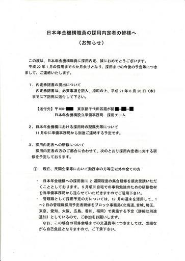 | Keywords: 2009-07-28-InformationProspectiveEmployee-JapanPensionService-001.jpg en Information to prospective employee of Japan Pension Service ja 日 年金機構の職員内定 へのお知らせ 表 I took this photo 人が撮影 VOLDE ヴォルド 30 July 2009 平成21年7 30日 Cc-zero Documents of Japan Pension Service |