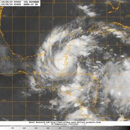 MAKE A MEME View Large Image 20101025.0045.goes13.x.ir1km bw.19LRICHARD.80kts-981mb-172N-882W.100pc.jpg This is an infrared image of Hurricane Richard at peak intensity and making landfall on Belize taken by the GOES-13 spacecraft Leading up to this photograph Richard ...