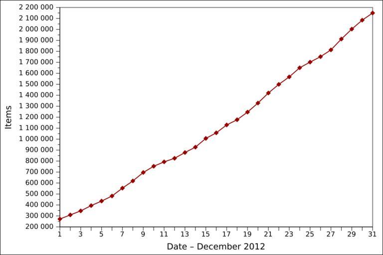 | Keywords: 2012-12 Wikidata items EN.svg de Grafische Darstellung des vollständigen Anzahls der angelegten Gegenstände auf Wikidata in Dezember 2012 auf Englisch Löschungen werden nicht berücksichtigt en Graph presenting the total number of items created on Wikidata as of December 2012 in English Item deletions are not taken into account fr Graphique en anglais représentant le nombre total d'éléments créés sur Wikidata en décembre 2012 Les suppressions d'éléments ne sont pas prises en compte 2012-12-08 15 19 01 own Ljubinka cc-zero de inline yes File 2012-12 Wikidata items DE svg fr inline yes File 2012-12 Wikidata items FR svg Wikidata statistics in December 2012 Wikidata statistics in English |
