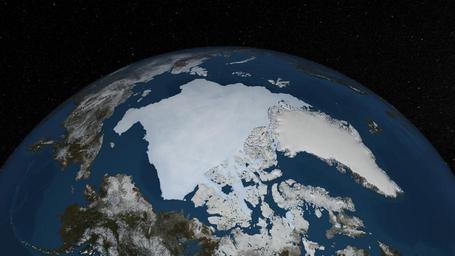 | Keywords: 2013 Daily Arctic Sea Ice from AMSR2 May - September 2013 STILL IMAGE.png en A still image of the Arctic sea ice on September 12th 2013 when the sea ice reached the annual minimum extent of 5 22 million square km 2013-09-19 http //svs gsfc nasa gov/goto 4104 NASA's Goddard Space Flight Center Scientific Visualization Studio AMSR2 data courtesy of the Japan Aerospace Exploration Agency JAXA The Japan Aerospace Exploration Agency JAXA provides many water-related products derived from data acquired by the Advanced Microwave Scanning Radiometer 2 AMSR2 instrument aboard the Global Change Observation Mission 1st-Water SHIZUKU GCOM-W1 satellite Two JAXA datasets used in this animation are the 10-km daily sea ice concentration and the 10 km daily 89 GHz Brightness Temperature In this animation the daily Arctic sea ice and seasonal land cover change progress through time from May 16 2013 through September 12 2013 when the sea ice reached its minimum area of coverage for 2013 Over the water Arctic sea ice changes from day to day showing a running 3-day minimum sea ice concentration in the region where the concentration is greater than 15 The blueish white colour of the sea ice is derived from a 3-day running minimum of the AMSR2 89 GHz brightness temperature Over the land monthly data from the seasonal Blue Marble Next Generation fades slowly from month to month cc-zero Uploaded with UploadWizard Arctic AMSR2 Arctic sea ice extent |