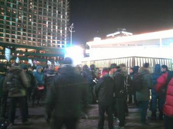 Keywords: 2013 Korea railroad general strike demo in seoul plaza 4.jpg an ice rink People were skating cheerly indifferent to the protest on the other side of plaza own Self-made 2013-12-19 Seoul Plaza 2013 Korea railroad general strike