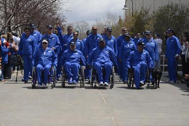 | Keywords: 2013 Warrior Games 130511-D-DB155-009.jpg en Team Air Force enters the U S Olympic Training Center for the opening ceremony of the 2013 Warrior Games in Colorado Springs Colo May 11 From May 11-16 more than 200 wounded ill and injured servicemembers and veterans from the U S Marines Army Air Force and Navy as well as a team representing U S Special Operations Command and an international team representing the United Kingdom will compete for the gold in track and field shooting swimming cycling archery wheelchair basketball and sitting volleyball at the U S Olympic Training Center and U S Air Force Academy The military service with the most medals will win the Chairman's Cup 2013-05-11 EJ Hersom https //www dvidshub net/image/929502 130511-D-DB155-009 2013-05-11 17 42 COLORADO SPRINGS CO US PD-USGov U S Olympic Training Center Images from DoD uploaded by Fæ |