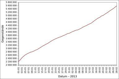 | Keywords: 2013 Wikidata items DE.svg de Grafische Darstellung des vollständigen Anzahls der angelegten Gegenstände auf Wikidata im Jahr 2013 auf Deutsch Löschungen werden nicht berücksichtigt en Graph presenting the total number of items created on Wikidata as of 2013 in German Item deletions are not taken into account fr Graphique en allemand représentant le nombre total d'éléments créés sur Wikidata en 2013 Les suppressions d'éléments ne sont pas prises en compte 2013-03-01 16 27 11 own Ljubinka cc-zero en inline yes File 2013 Wikidata items EN svg fr inline yes File 2013 Wikidata items FR svg Wikidata statistics in 2013 Wikidata statistics in German |