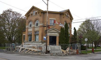 | Keywords: 2010s town hall townhall outdoor architecture building South and east elevations of the Town Hall at Deseronto, Ontario, on May 14th, 2014, with work underway to install a ramp to the front door of the building. South and east elevations of the Town Hall at Deseronto, Ontario, on May 14th, 2014, with work underway to install a ramp to the front door of the building. | ||||