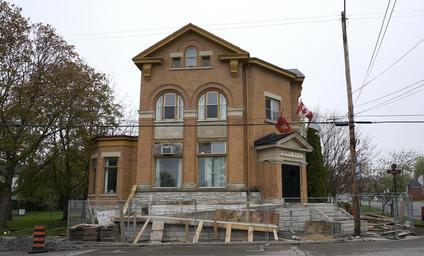 | Keywords: 2010s town hall townhall building architecture outdoor South elevation of the Town Hall at Deseronto, Ontario, on May 14th, 2014, with work underway to install a ramp to the front door of the building. South elevation of the Town Hall at Deseronto, Ontario, on May 14th, 2014, with work underway to install a ramp to the front door of the building. |