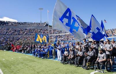 | Keywords: 2014 Warrior Games 141004-D-HU462-449.jpg en U S service members and veteran athletes are recognized for achievements during the 2014 Warrior Games at halftime during the Air Force versus Navy football game at the U S Air Force Academy's Falcon Stadium in Colorado Springs Colo Oct 4 2014 The Warrior Games is an annual event allowing wounded ill and injured service members and veterans to compete in Paralympic sports including archery cycling shooting sitting volleyball track and field swimming and wheelchair basketball DOD photo by Staff Sgt Sean K Harp U S Army/Released 2014-10-04 Staff Sgt Sean Harp https //www dvidshub net/image/1604809 141004-D-HU462-449 2014-10-08 00 00 COLORADO SPRINGS CO US PD-USGov Falcon Stadium Images from DoD uploaded by Fæ |