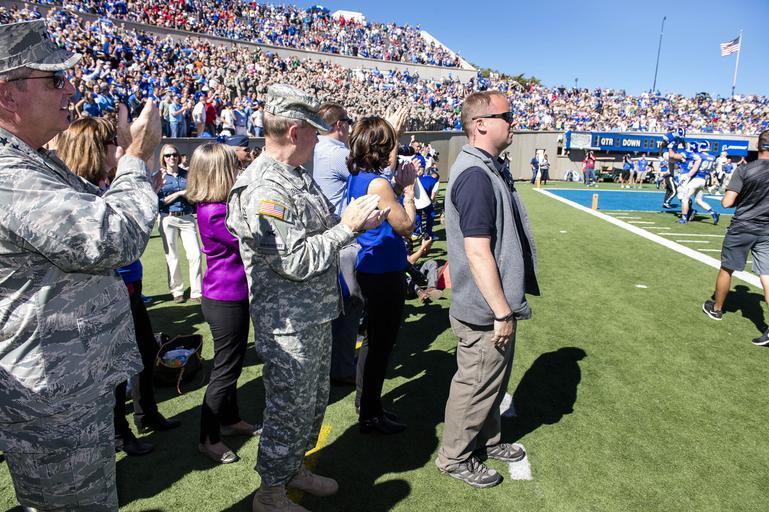 | Keywords: 2014 Warrior Games 141004-D-HU462-353.jpg en U S Army Gen Martin E Dempsey center the chairman of the Joint Chiefs of Staff and Air Force Gen Mark A Welsh III left the chief of staff of the Air Force clap for an Air Force touchdown during a football game with the Navy team during the 2014 Warrior Games in Colorado Springs Colo Oct 4 2014 The Warrior Games is an annual event allowing wounded ill and injured Service members and veterans to compete in Paralympic sports including archery cycling shooting sitting volleyball track and field swimming and wheelchair basketball DoD photo by Staff Sgt Sean K Harp U S Army/Released 2014-10-04 Staff Sgt Sean Harp https //www dvidshub net/image/1604920 141004-D-HU462-353 2014-10-08 00 02 COLORADO SPRINGS CO US PD-USGov Mark A Welsh III Martin E Dempsey in 2014 Images from DoD uploaded by Fæ |