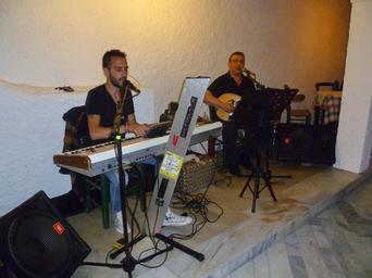 Keywords: Liapades Beach Hotel -- Greek night -- chauffeur Alex people musician public band greece creativecommons singer local corfu guitarist keyboardplayer profession keyboardist vak localpeople grc greeknight cc0 karousades géfyra coeluc vak201505corfu