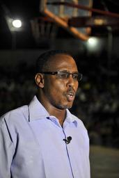 | Keywords: Abdullahi Nur Mohamed, Chairman of Somalia Basketball Federation speaking during the match between Heegan and Horseed basketball teams in Abdiaziz district of Mogadishu Somalia, on March 13 2015. Basketball has a huge following in Somalia and is considered to be the second favorite sports after football. The relative peace enjoyed in Mogadishu these days means local fans can enjoy such games of basketball at night. AMISOM Photo / Ilyas Ahmed Abdullahi Nur Mohamed, Chairman of Somalia Basketball Federation speaking during the match between Heegan and Horseed basketball teams in Abdiaziz district of Mogadishu Somalia, on March 13 2015. Basketball has a huge following in Somalia and is considered to be the second favorite sports after football. The relative peace enjoyed in Mogadishu these days means local fans can enjoy such games of basketball at night. AMISOM Photo / Ilyas Ahmed 2015 03 13 Mogadishu Basketball-6 (16191124153).jpg en Abdullahi Nur Mohamed Chairman of Somalia Basketball Federation speaking during the match between Heegan and Horseed basketball teams in Abdiaziz district of Mogadishu Somalia on March 13 2015 Basketball has a huge following in Somalia and is considered to be the second favorite sports after football The relative peace enjoyed in Mogadishu these days means local fans can enjoy such games of basketball at night AMISOM Photo / Ilyas Ahmed 2015-03-13 19 25 12 https //www flickr com/photos/au_unistphotostream/16191124153/ Flickr en AMISOM Public Information AMISOM Public Information https //flickr com/photos/61765479 N08/16191124153 2015-11-28 09 08 30 cc-zero cc-0 Photographs by the African Union Mission to Somalia basketball in Somalia Abdullahi Nur Mohamed, Chairman of Somalia Basketball Federation speaking during the match between Heegan and Horseed basketball teams in Abdiaziz district of Mogadishu Somalia, on March 13 2015. Basketball has a huge following in Somalia and is considered to be the second favorite sports after football. The relative peace enjoyed in Mogadishu these days means local fans can enjoy such games of basketball at night. AMISOM Photo / Ilyas Ahmed |