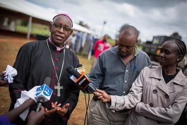 | Keywords: kenya nyeri africa roman catholic italy nun sister irene stefani sainthood missionary world war one beatification ceremony soldiers wounded tourism christian nuns faith religion people outdoor KENYA, Nyeri: In a photograph taken 21 May 2015, and made available by Make It Kenya, Archbishop Peter Kairo (left) from Nyeri diocese talks to the media ahead of Kenya and Africa's first Roman Catholic beatification ceremony. Final preparations are being made to host thousands of worshippers, officials and visitors who are expected to congregate 23 May for the event in the town of Nyeri approx. 150 kilometers north of the Kenyan capital Nairobi. The ceremony is a critical step towards sainthood for Irene Stefani, an Italian nun and missionary who is beloved in Nyeri and its environs for her selfless service to wounded World War One soldiers and ailing locals alike. Sister Stefani arrived in Kenya in 1915 and gained fame over the following years for her generosity and extraordinary empathy. She died in 1930 after contracting plague. MANDATORY CREDIT: MAKE IT KENYA PHOTO / STUART PRICE. KENYA, Nyeri: In a photograph taken 21 May 2015, and made available by Make It Kenya, Archbishop Peter Kairo (left) from Nyeri diocese talks to the media ahead of Kenya and Africa's first Roman Catholic beatification ceremony. Final preparations are being made to host thousands of worshippers, officials and visitors who are expected to congregate 23 May for the event in the town of Nyeri approx. 150 kilometers north of the Kenyan capital Nairobi. The ceremony is a critical step towards sainthood for Irene Stefani, an Italian nun and missionary who is beloved in Nyeri and its environs for her selfless service to wounded World War One soldiers and ailing locals alike. Sister Stefani arrived in Kenya in 1915 and gained fame over the following years for her generosity and extraordinary empathy. She died in 1930 after contracting plague. MANDATORY CREDIT: MAKE IT KENYA PHOTO / STUART PRICE. |
