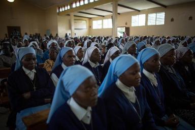 | Keywords: kenya nyeri africa roman catholic italy nun sister irene stefani sainthood missionary world war one beatification ceremony soldiers wounded tourism christian nuns faith religion indoor KENYA, Nyeri: In a photograph taken 21 May 2015, and made available by Make It Kenya, a man stands inside a church ahead of Kenya and Africa's first Roman Catholic beatification ceremony. Final preparations are being made to host thousands of worshippers, officials and visitors who are expected to congregate 23 May for the event in the town of Nyeri approx. 150 kilometers north of the Kenyan capital Nairobi. The ceremony is a critical step towards sainthood for Irene Stefani, an Italian nun and missionary who is beloved in Nyeri and its environs for her selfless service to wounded World War One soldiers and ailing locals alike. Sister Stefani arrived in Kenya in 1915 and gained fame over the following years for her generosity and extraordinary empathy. She died in 1930 after contracting plague. MANDATORY CREDIT: MAKE IT KENYA PHOTO / STUART PRICE. KENYA, Nyeri: In a photograph taken 21 May 2015, and made available by Make It Kenya, a man stands inside a church ahead of Kenya and Africa's first Roman Catholic beatification ceremony. Final preparations are being made to host thousands of worshippers, officials and visitors who are expected to congregate 23 May for the event in the town of Nyeri approx. 150 kilometers north of the Kenyan capital Nairobi. The ceremony is a critical step towards sainthood for Irene Stefani, an Italian nun and missionary who is beloved in Nyeri and its environs for her selfless service to wounded World War One soldiers and ailing locals alike. Sister Stefani arrived in Kenya in 1915 and gained fame over the following years for her generosity and extraordinary empathy. She died in 1930 after contracting plague. MANDATORY CREDIT: MAKE IT KENYA PHOTO / STUART PRICE. |