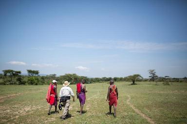 MAKE A MEME View Large Image Maasai Mara: In a photograph taken by Make It Kenya 15 June 2015, Phil Edwards, a repeat, yearly vistor to Porini Mara Camp in the Ol Kinyei Conservancy in Kenya's Maasai Mara, walks with Maasai guides during a walking safari. The ...