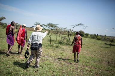 MAKE A MEME View Large Image Maasai Mara: In a photograph taken by Make It Kenya 15 June 2015, Phil Edwards, a repeat, yearly vistor to Porini Mara Camp in the Ol Kinyei Conservancy in Kenya's Maasai Mara, walks with Maasai guides during a walking safari. The ...