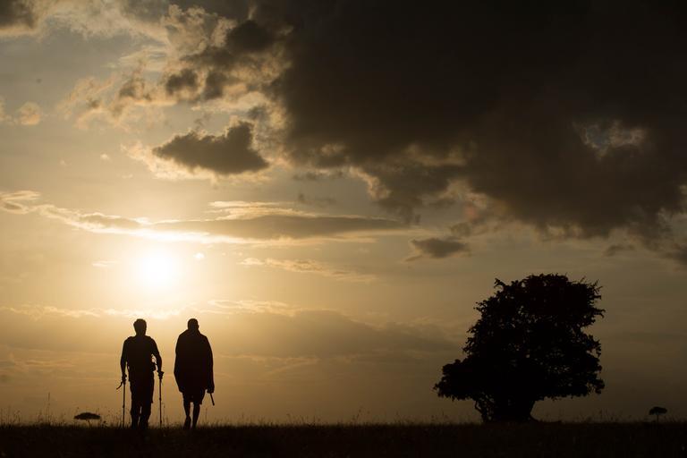 Keywords: kenya travel tourism culture tradition maasai mara national reserve north conservancy wildlife conservation walking village manyatta traditional contemporary lifestyles modern world 21st century change development outdoor sky cloud sunset serene monochrome sea KENYA, Maasai Mara: In a photograph taken by Make It Kenya 23 June 2015, author and travel writer Stuart Butler walks with his Maasai guide and companion Josphat Mako as the sun begins to set over the Mara North Conservancy adjacent to Kenya's world famous Maasai Mara National Reserve. Throughout the months of May and June, Stuart and Mako walked over 200km across traditional lands belonging to Kenya's Maasai. Embarking from the high, remote and forested Loita Hills they headed west, skirting the edge of the world famous Maasai Mara National Reserve, passing through private and community conservancies before finishing at the foot of the Oloololo Escarpment. During the expedition, Stuart and Mako visited numerous Maasai villages known as manyattas spending time with both past and present generations of Maasai people, learning about their traditional cultures and contemporary Maasai lifestyles, and the pressure of the modern world and the 21st Century, conservation, political pressures and tourism, all of which influence and contribute to Maasai life today. MANDATORY CREDIT: MAKE IT KENYA PHOTO / STUART PRICE. KENYA, Maasai Mara: In a photograph taken by Make It Kenya 23 June 2015, author and travel writer Stuart Butler walks with his Maasai guide and companion Josphat Mako as the sun begins to set over the Mara North Conservancy adjacent to Kenya's world famous Maasai Mara National Reserve. Throughout the months of May and June, Stuart and Mako walked over 200km across traditional lands belonging to Kenya's Maasai. Embarking from the high, remote and forested Loita Hills they headed west, skirting the edge of the world famous Maasai Mara National Reserve, passing through private and community conservancies before finishing at the foot of the Oloololo Escarpment. During the expedition, Stuart and Mako visited numerous Maasai villages known as manyattas spending time with both past and present generations of Maasai people, learning about their traditional cultures and contemporary Maasai lifestyles, and the pressure of the modern world and the 21st Century, conservation, political pressures and tourism, all of which influence and contribute to Maasai life today. MANDATORY CREDIT: MAKE IT KENYA PHOTO / STUART PRICE.