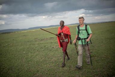 MAKE A MEME View Large Image Maasai Mara: In a photograph taken by Make It Kenya 23 June 2015, author and travel writer Stuart Butler walks with his Maasai guide and companion Josphat Mako across the Mara North Conservancy adjacent to Kenya's world famous Maasai Mara ...