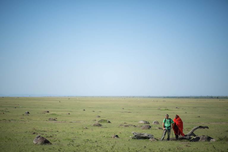 Keywords: kenya travel tourism culture tradition maasai mara national reserve north conservancy wildlife conservation walking village manyatta traditional contemporary lifestyles modern world 21st century change development outdoor sky KENYA, Maasai Mara: In a photograph taken by Make It Kenya 24 June 2015, author and travel writer Stuart Butler and his Maasai guide and companion Josphat Mako survey the landscape in the Mara North Conservancy adjacent to Kenya's world famous Maasai Mara National Reserve. Throughout the months of May and June, Stuart and Mako walked over 200km across traditional lands belonging to Kenya's Maasai. Embarking from the high, remote and forested Loita Hills they headed west, skirting the edge of the world famous Maasai Mara National Reserve, passing through private and community conservancies before finishing at the foot of the Oloololo Escarpment. During the expedition, Stuart and Mako visited numerous Maasai villages known as manyattas spending time with both past and present generations of Maasai people, learning about their traditional cultures and contemporary Maasai lifestyles, and the pressure of the modern world and the 21st Century, conservation, political pressures and tourism, all of which influence and contribute to Maasai life today. MANDATORY CREDIT: MAKE IT KENYA PHOTO / STUART PRICE. KENYA, Maasai Mara: In a photograph taken by Make It Kenya 24 June 2015, author and travel writer Stuart Butler and his Maasai guide and companion Josphat Mako survey the landscape in the Mara North Conservancy adjacent to Kenya's world famous Maasai Mara National Reserve. Throughout the months of May and June, Stuart and Mako walked over 200km across traditional lands belonging to Kenya's Maasai. Embarking from the high, remote and forested Loita Hills they headed west, skirting the edge of the world famous Maasai Mara National Reserve, passing through private and community conservancies before finishing at the foot of the Oloololo Escarpment. During the expedition, Stuart and Mako visited numerous Maasai villages known as manyattas spending time with both past and present generations of Maasai people, learning about their traditional cultures and contemporary Maasai lifestyles, and the pressure of the modern world and the 21st Century, conservation, political pressures and tourism, all of which influence and contribute to Maasai life today. MANDATORY CREDIT: MAKE IT KENYA PHOTO / STUART PRICE.