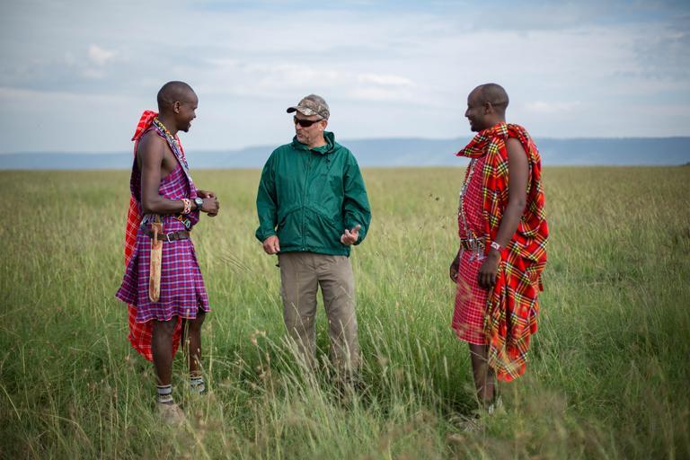 Keywords: kenya maasai mara national reserve idaho united states america usa conservation wildlife animals tourism holiday safari wilderness culture biodiversity landscape outdoor field KENYA, Maasai Mara: In a photograph taken by Make It Kenya 29 June 2015, Bill Rautsaw from central Idaho in the United States, discusses with Sammy (left) and Henry (right), professional Maasai guides from Entim Camp in Kenya's Maasai Mara National Reserve. A repeat and regular visitor to Kenya, the retired United States Forest Service worker and conservationist feels a strong link between his home town and the East African nation through his involvement with conservation and his work with endangered species. Rautsaw says coming to Kenya changed his life, enhancing his love and feelings for the natural world, exposing him to a wide variety of cultures through the country's biodiversity, wildlife, and landscapes. By his own admission, Rautsaw says Idaho is just about as far away from Kenya's tropical beaches and coastline and it's world famous Maasai Mara National Reserve as you can get, but it's more than worth the trip, and the distance is worth every second that you spend in the country. It's a country of many choices he says, and one definitely not to be missed. MANDATORY CREDIT: MAKE IT KENYA PHOTO / STUART PRICE. KENYA, Maasai Mara: In a photograph taken by Make It Kenya 29 June 2015, Bill Rautsaw from central Idaho in the United States, discusses with Sammy (left) and Henry (right), professional Maasai guides from Entim Camp in Kenya's Maasai Mara National Reserve. A repeat and regular visitor to Kenya, the retired United States Forest Service worker and conservationist feels a strong link between his home town and the East African nation through his involvement with conservation and his work with endangered species. Rautsaw says coming to Kenya changed his life, enhancing his love and feelings for the natural world, exposing him to a wide variety of cultures through the country's biodiversity, wildlife, and landscapes. By his own admission, Rautsaw says Idaho is just about as far away from Kenya's tropical beaches and coastline and it's world famous Maasai Mara National Reserve as you can get, but it's more than worth the trip, and the distance is worth every second that you spend in the country. It's a country of many choices he says, and one definitely not to be missed. MANDATORY CREDIT: MAKE IT KENYA PHOTO / STUART PRICE.